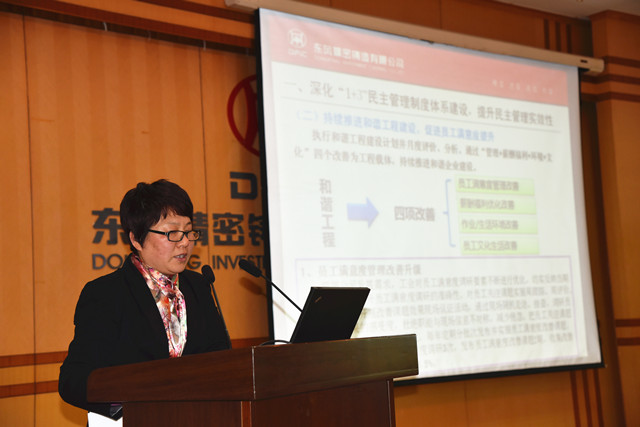 首先,總經(jīng)理杜孔明作題為《為突破性推進(jìn)公司創(chuàng)新發(fā)展而努力》2016年度工作報(bào)告,會(huì)議隨后聽(tīng)取了《2016年提案工作報(bào)告及員工滿(mǎn)意度課題達(dá)成情況報(bào)告》、《領(lǐng)導(dǎo)班子評(píng)議工作報(bào)告》以及《關(guān)于認(rèn)真貫徹總經(jīng)理工作報(bào)告的決議》,黨委書(shū)記、工會(huì)主席孫長(zhǎng)虹作了《2016年度工會(huì)委員會(huì)工作報(bào)告》、《和鼎公司2016年收益情況通報(bào)》及《工會(huì)經(jīng)費(fèi)審查報(bào)告》。
